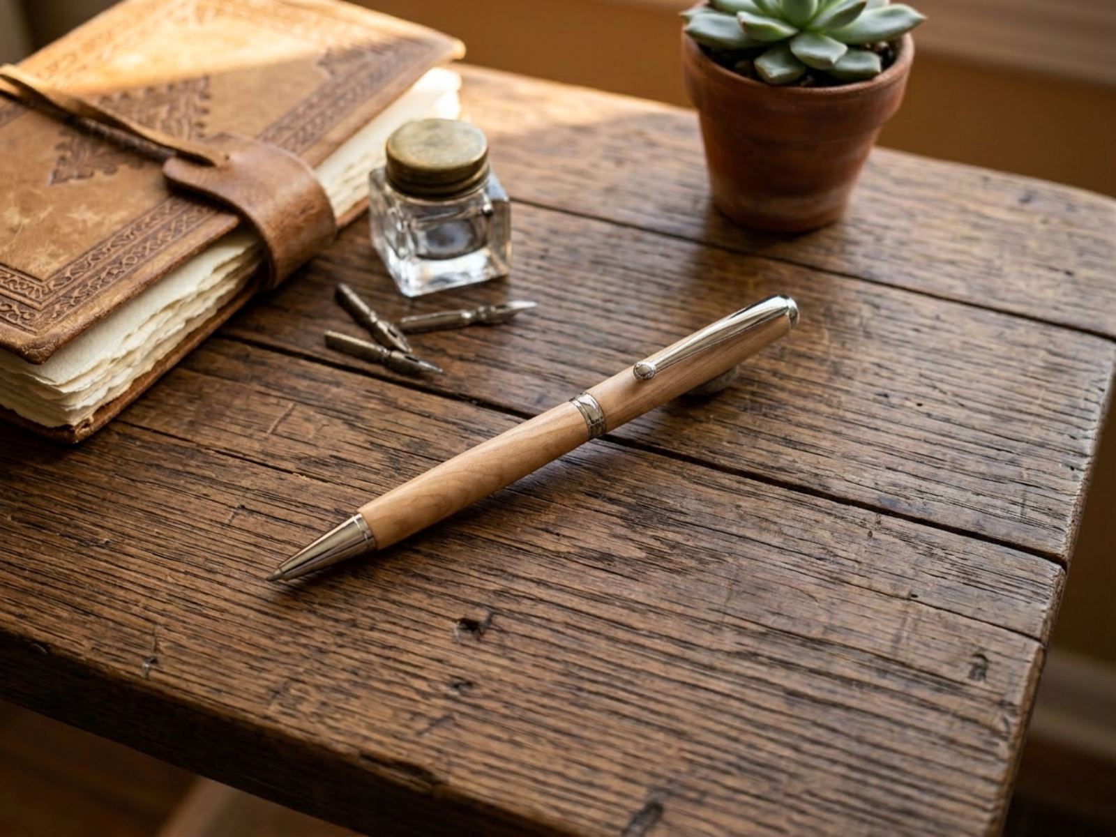 Κάθε στυλό σμιλεύεται με το χέρι, ακολουθώντας τα «νερά» και την προσωπικότητα του κάθε ξύλου. Στη συνέχεια, συντίθεται με τον ασημένιο μεταλλικό μηχανισμό, δημιουργώντας ένα εργαλείο που γεφυρώνει τη φύση με την τέχνη της επικοινωνίας. Στη συλλογή «Αλληλογραφία», αυτό το στυλό λειτουργεί ως ο «Χαράκτης» της Σκέψης, συνεργαζόμενος με την Πένα και τον Χαρτοκόπτη για να ολοκληρωθεί η σύνθεση του δικού σας «Ησυχαστηρίου».