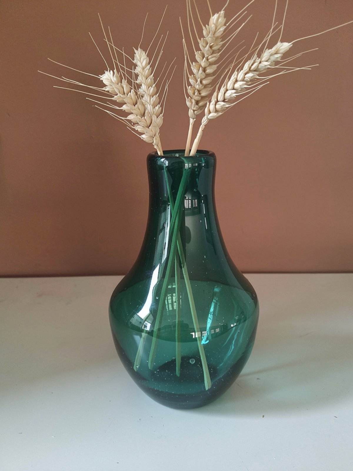 There is a moment, just before a drop falls from a leaf, when its shape is perfect. This vase captures exactly that moment of gravity. With a narrow neck that gently widens towards the base, it mimics the natural flow of water. The blown glass here displays its elasticity, creating a silhouette that seems to ascend. Perfect for tall wildflowers or lavender stems.